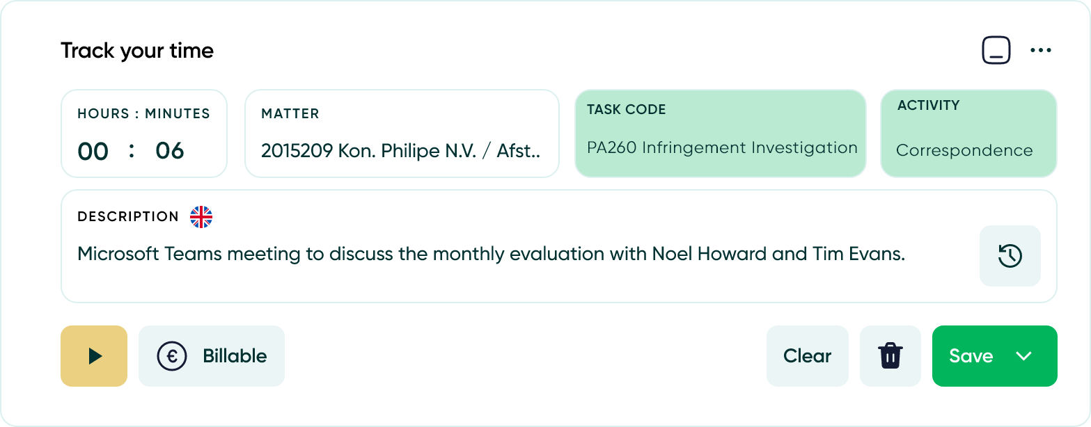 TIQ Time now uses GenAI to automatically suggest the correct UTBMS task, activity, or expense codes for suggested time entires, fully aligned with your client's Outside Counsel Guidelines