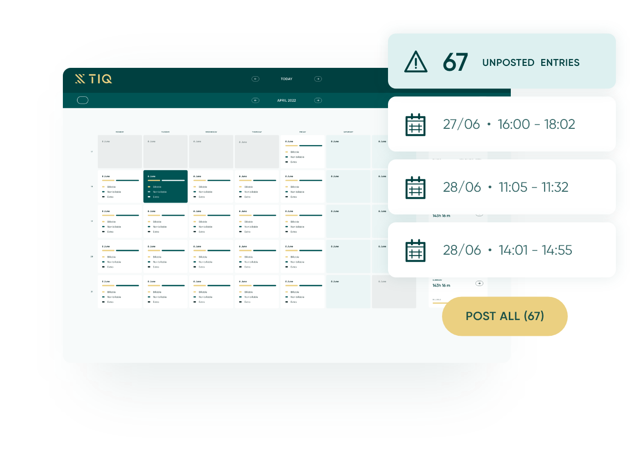 TIQ Time now supports automatic posting of time entries to drive timesheet completeness. Accelerate your time-to-invoice and streamline the billing process by releasing entries that would otherwise remain stuck in pre-billing.