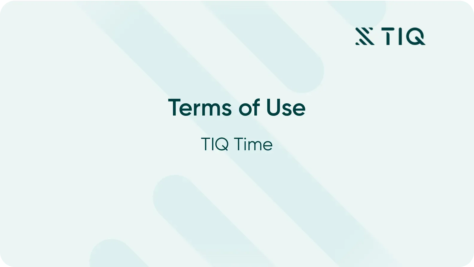 These are the Terms of Use of the TIQ Application, a service offered by Tiq B.V., a private company with limited liability established and existing under the laws of the Netherlands, having its registered office in (1019GM) Amsterdam, the Netherlands, at Piet Heinkade 55, registered with the Chamber of Commerce under 61519707 (hereinafter: ‘’Tiq’’). These Terms of Use apply to the access to and use of the TIQ Application. We advise you to carefully read the Terms of Use, so you fully understand the rights and obligations you have in relation to your use of the TIQ Application. You can access the Terms of Use through this hyperlink https://www.tiqtime.com/terms.